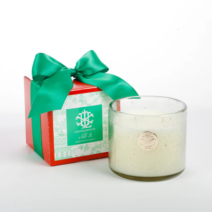 Experience the warm, refreshing scent of Noble Fir with this 13 oz candle, beautifully presented in a festive red box adorned with a charming bow. Perfect for creating a cozy atmosphere or gifting during the holidays, this candle combines elegant packaging with a long-lasting fragrance that fills any space with the crisp, natural aroma of fir trees. Elevate your home ambiance or delight someone special with this thoughtfully packaged candle.