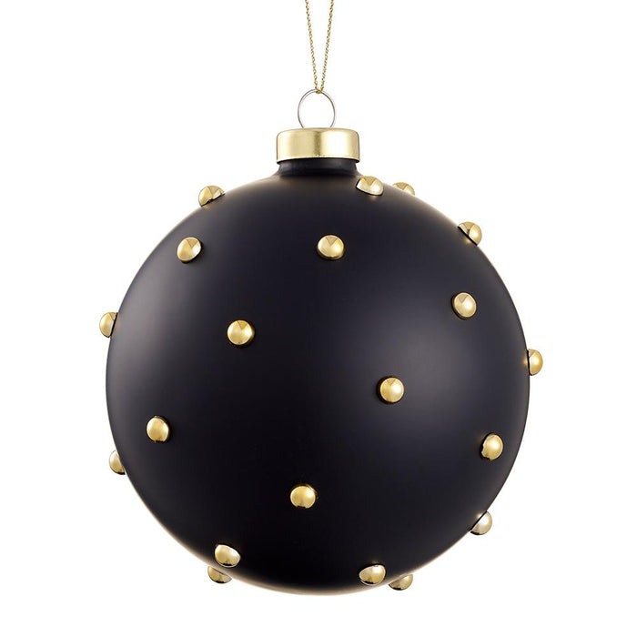 8" Beaded Glass Ball Ornament Black Gold