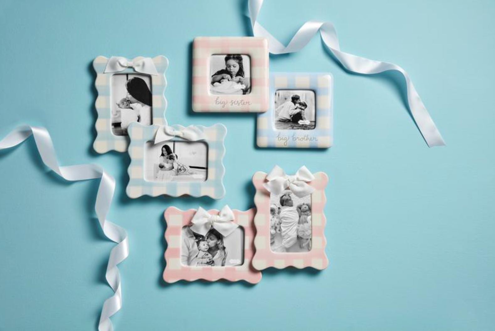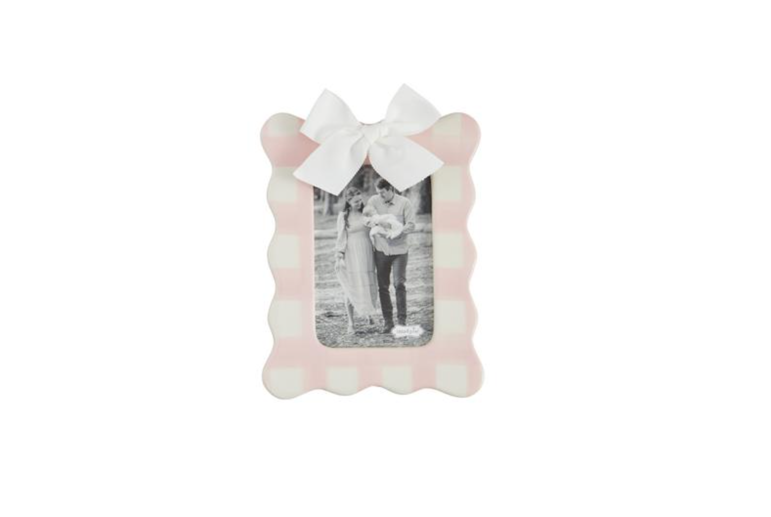 This exquisite hand-painted ceramic frame is a perfect blend of artistry and functionality, designed to beautifully showcase your cherished memories. Measuring 4" x 6", the frame features a charming scallop edge that adds a touch of elegance and sophistication to any room. The delicate hat ribbon bow accentuates its unique design, making it a standout piece in your home decor. Crafted from high-quality dolomite, the frame is both durable and stylish, ensuring it remains a treasured keepsake for years to come. The easel back allows for easy display on any tabletop or shelf, providing versatility in placement. With its overall dimensions of 7" x 9", this frame is an ideal choice for highlighting your favorite photographs, adding a personal and artistic touch to your living space. Whether as a gift for a loved one or a special addition to your own collection, this hand-painted ceramic frame is sure to captivate and delight.