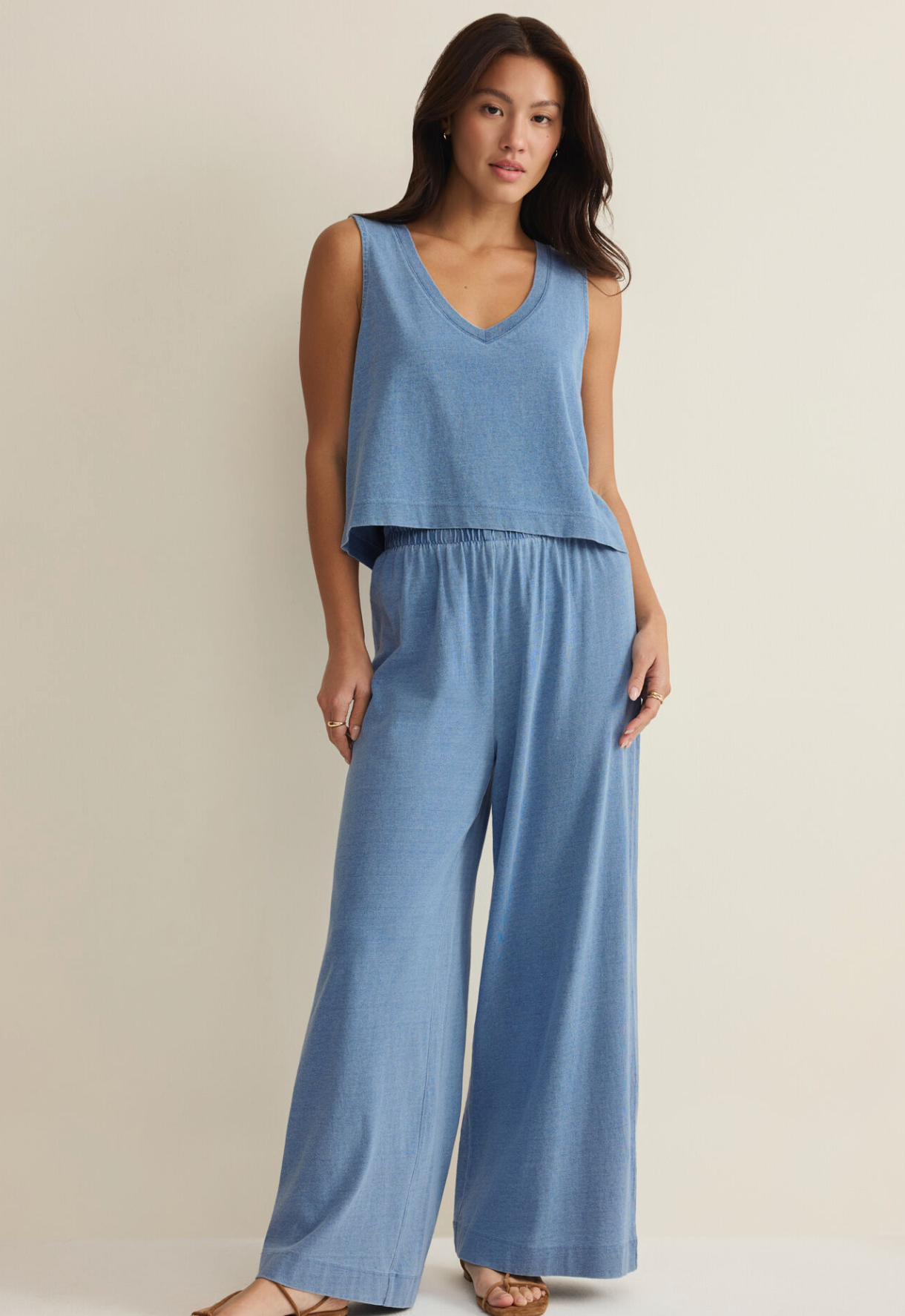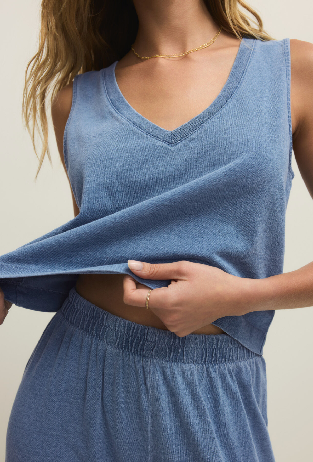 Sloane V-Neck Jersey Denim Top