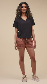Get set and go with this essential tee that can be paired with anything, anywhere. Featuring a slightly boxy silhouette and flattering V-neckline. Pair with our Helalia Shorts.