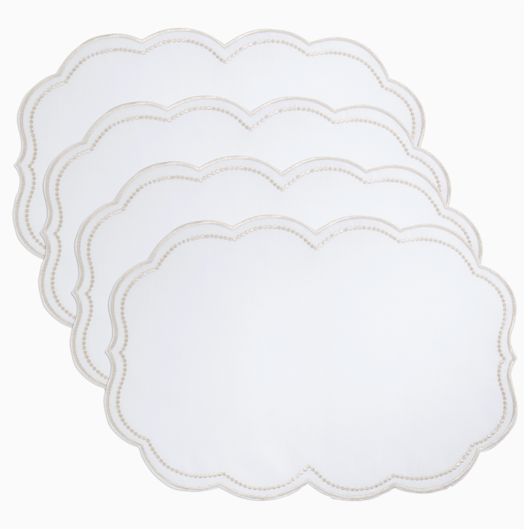 Introducing the Embroidered Polka Dot Placemats with Scallop Edge, where classic charm meets playful elegance. Each placemat features delicately embroidered polka dots, adding a touch of whimsy to your table setting. The scallop edge detail lends a refined finish, elevating the look with a subtle hint of sophistication. Crafted with meticulous attention to detail, these placemats bring a delightful touch to any dining occasion, whether it's a casual brunch or a formal dinner party. Add a dash of personality to your table decor with the Embroidered Polka Dot Placemats, and let your gatherings sparkle with style and charm.