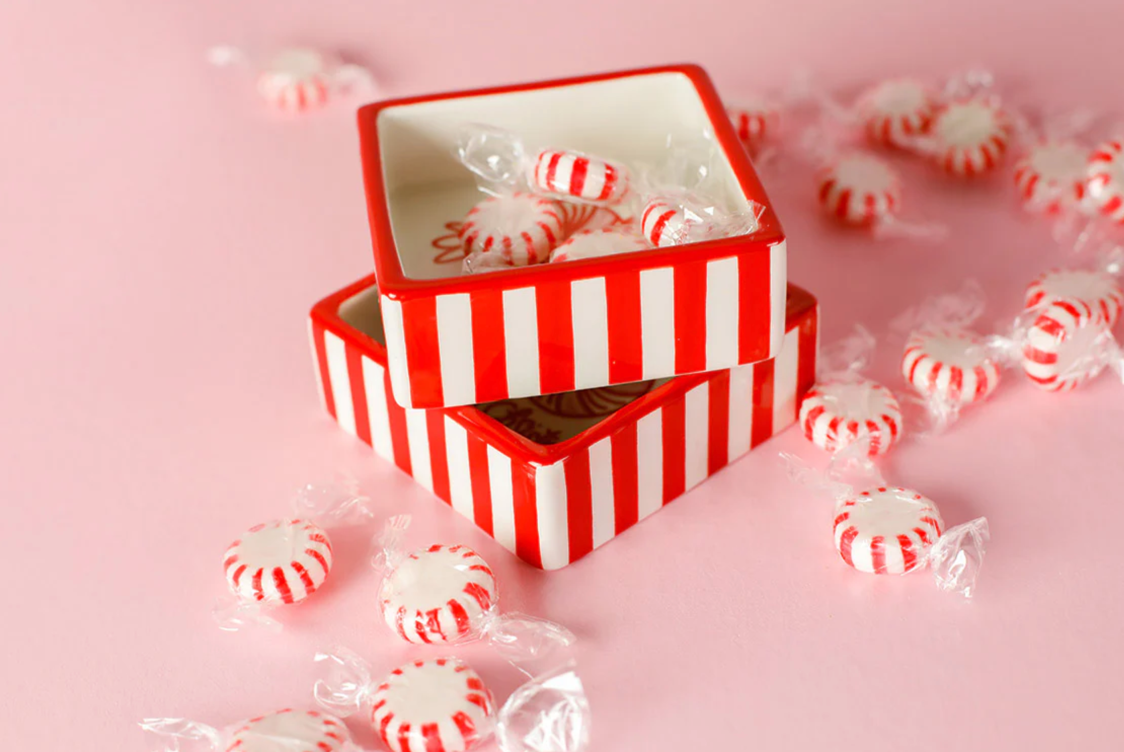 The perfect place for your treats and treasures, the Happy Christmas Peppermint Square Trinket Bowl will hold your happiest memories and favorite things. Whether you're celebrating a special occasion or simply looking to style your space, Happy Everything! products make it easy to find a little happy in everything.