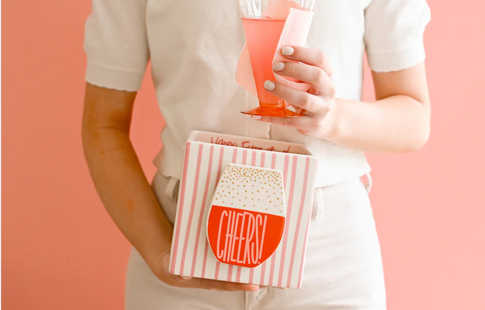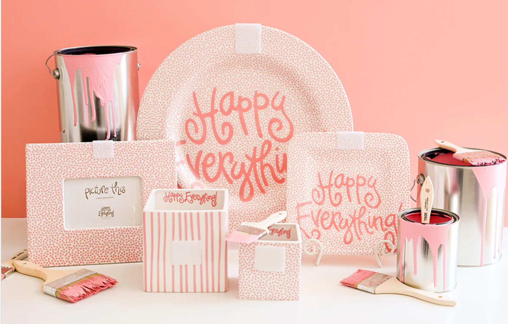 Organize your happy home with our Pink Skinny Stripe Medium Mini Nesting Cube. Designed in-house, the hand-painted pink and white stripes and interior “Happy Everything!” script make this Base a must-have. Whether it’s used as a planter or a catch-all dish, remember to add your favorite Mini Attachments to make it suit the season. Grab this giftable nesting cube today!